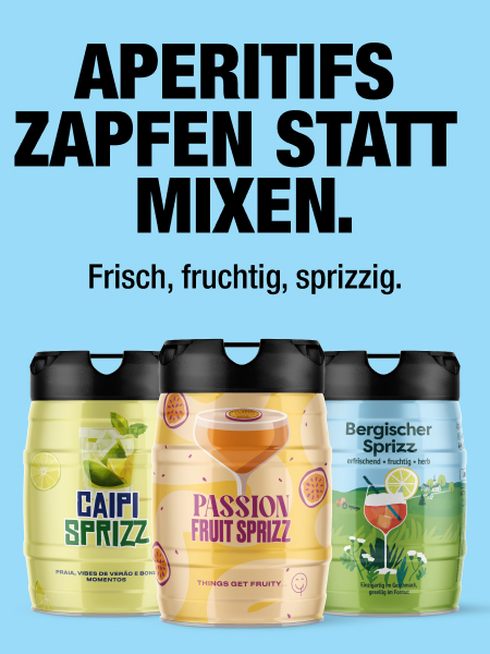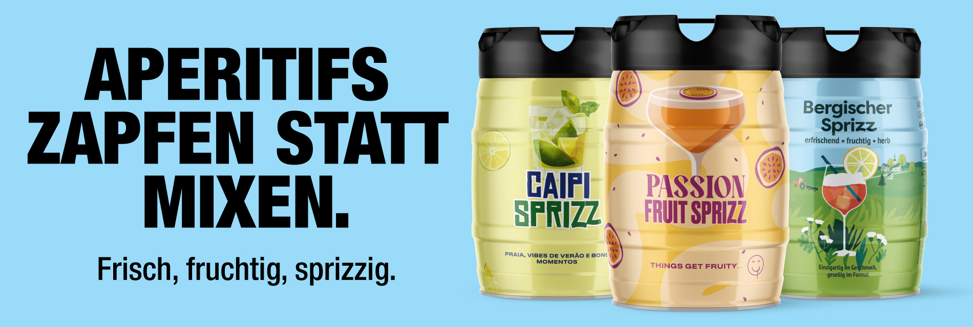 Der „Passion Fruit Sprizz“ bringt euch mit tropischen Noten von Maracuja, feiner Vanille und einem Hauch Limette direkt in Urlaubsstimmung. Frisch und spritzig kommt der „Caipi Sprizz“ daher – mit Limette und einer angenehm leichten Süße, die sofort Lust auf Sommer macht. Und der „Bergischer Sprizz“ überzeugt mit seiner ausgewogenen, fruchtig-herben Komposition.